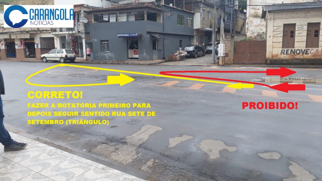 Quem vem da Av. Wady Mergh e precisa entrar sentido Rua Sete de Setembro (Triângulo) também precisa OBRIGATORIAMENTE FAZER A ROTATÓRIA para depois seguir. OBSERVE ABAIXO A FOTO DE ORIENTAÇÃO: