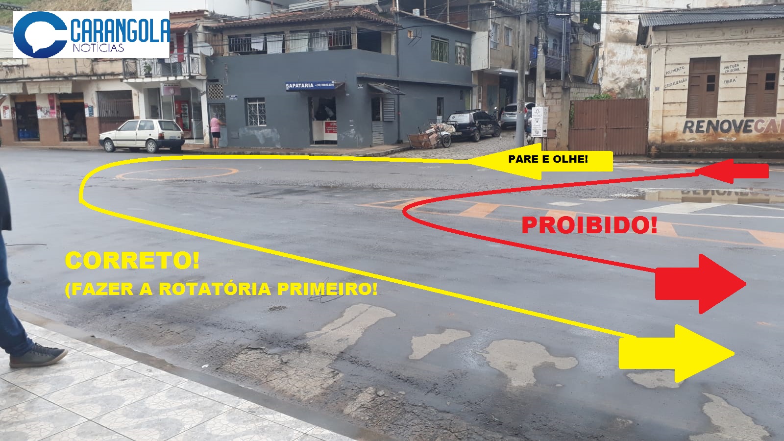 A Prefeitura de Carangola está realizando algumas melhorias e mudanças no trânsito urbano da cidade, principalmente no que tange à sinalização HORIZONTAL (pintada no chão). Muitos motoristas não tem observado essas mudanças e DESOBEDECIDO a sinalização, chegando a causar acidentes. Um dos locais de MAIOR CONFUSÃO na cidade está sendo a encruzilhada no início da AV. MACHADO DE ASSIS, onde agora existe uma rotatória e que OBRIGATORIAMENTE deve ser OBEDECIDA.