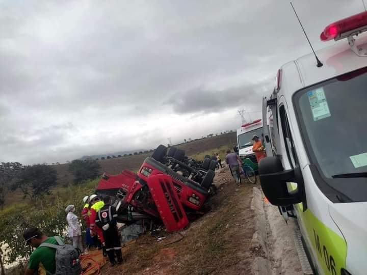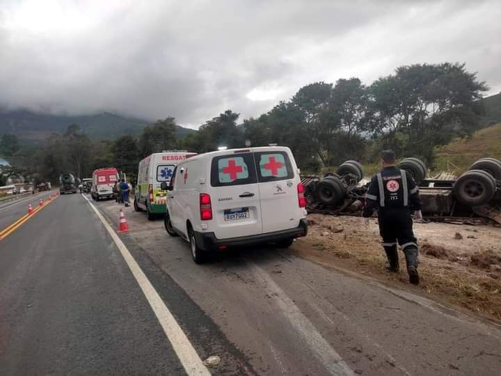 Conforme as primeiras informações, o motorista sofreu escoriações leves no acidente e foi socorrido pela ambulância da Secretaria de Saúde de São João do Manhuaçu. A carreta tombou ao lado da pista da rodovia. A mulher dele morreu presa às ferragens.
