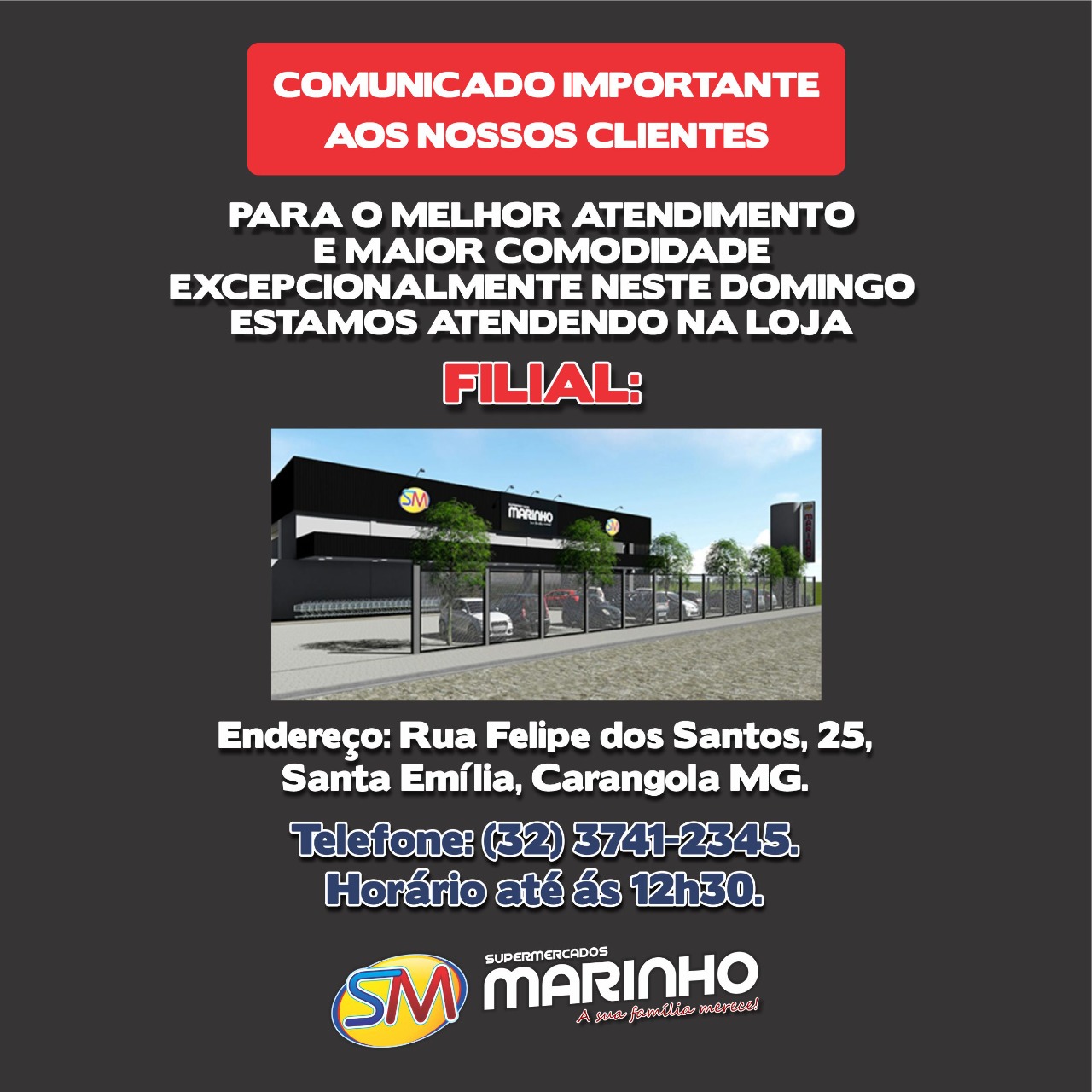NESTE DOMINGO (09) ESTÁ ABERTO O SUPERMERCADO MARINHO FILIAL (BAIRRO SANTA EMILIA) DE FORMA EXCEPCIONAL; CLIQUE E CONFIRA AS OFERTAS ESPECIAIS 9 de janeiro de 2022 Aproveite!!!