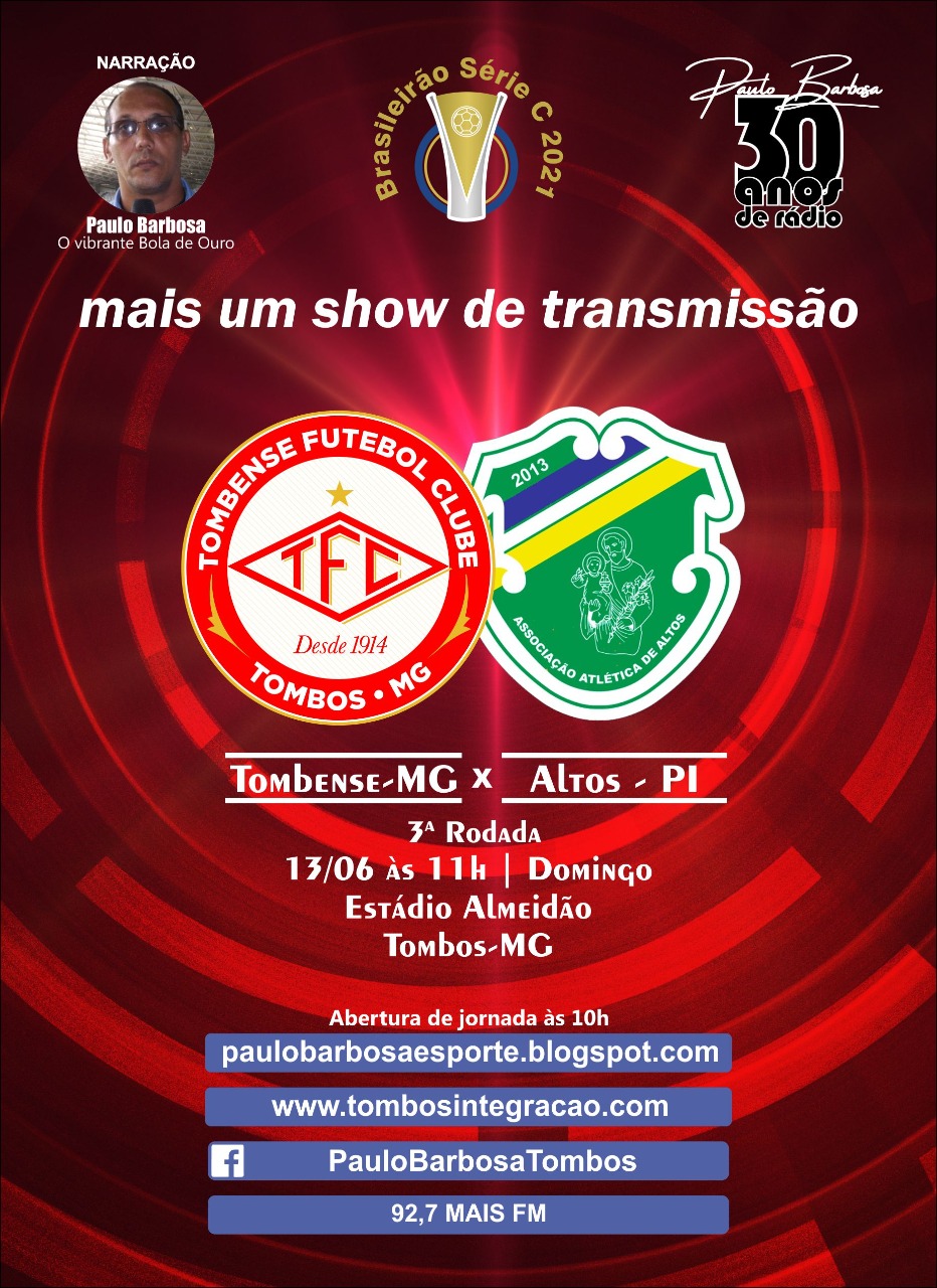 NESTE DOMINGO (13) TEM TOMBENSE X ALTOS – PI PELO BRASILEIRO SÉRIE C DO BRASILEIRO, TRANSMITIDO AO VIVO PELA RÁDIO MAIS FM E TOMBOSINTEGRACAO.COM