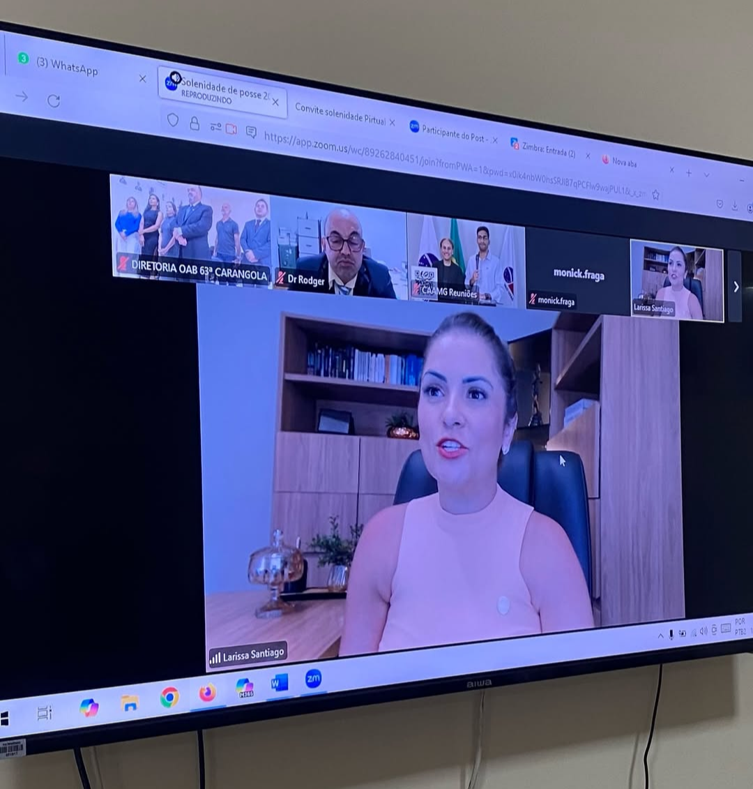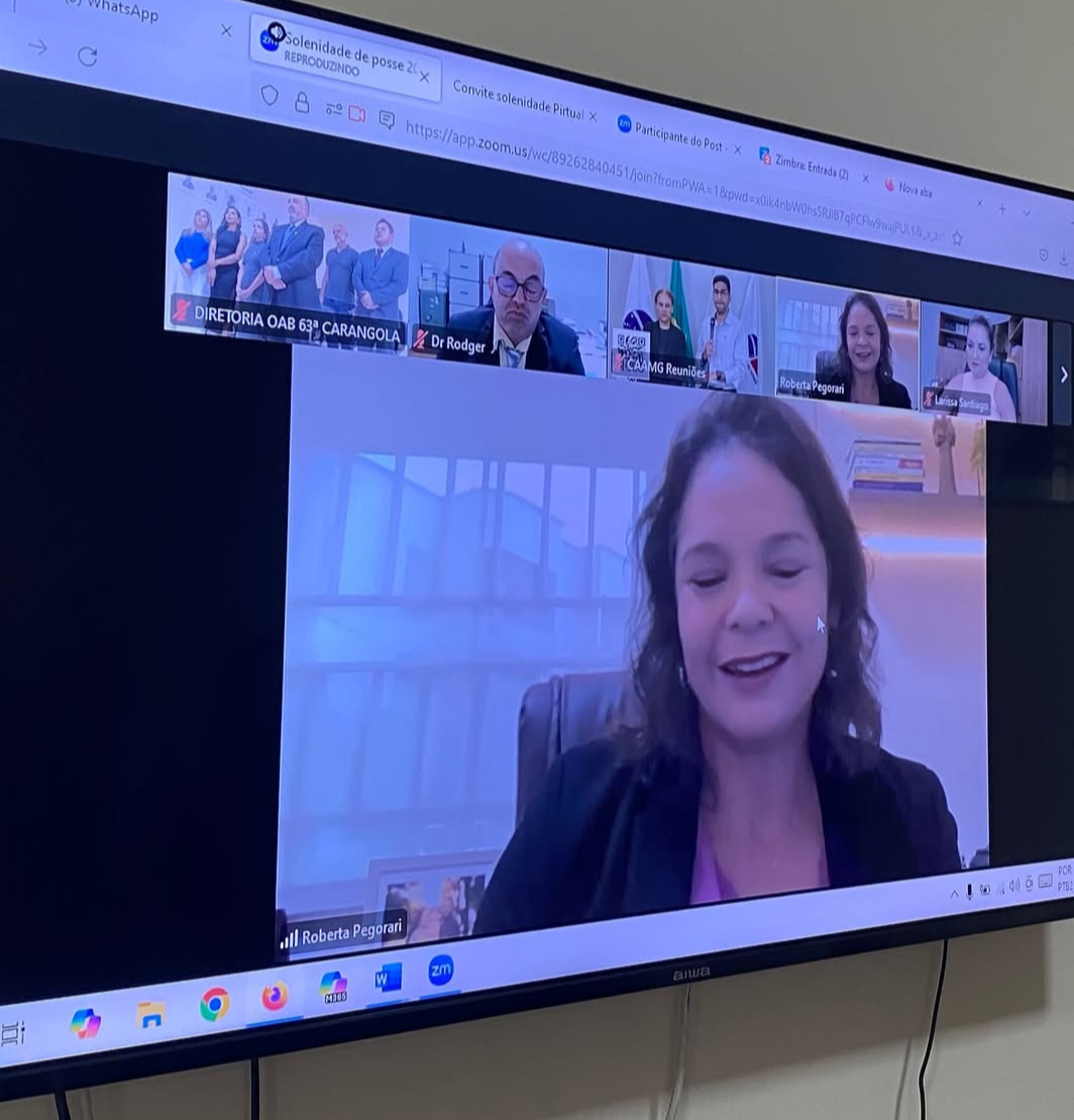 OAB-MG, Núbia de Paula, representado o Presidente Gustavo Chalfun, empossou de forma on-line, a diretoria da 63ª Subseção da OAB/MG – Carangola, para o triênio 2025-2027. Institucionais da CAAMG, Larissa Santiago e Roberta Pegorari, representaram a Presidente da Caixa de Assistência, Ângela Botelho.