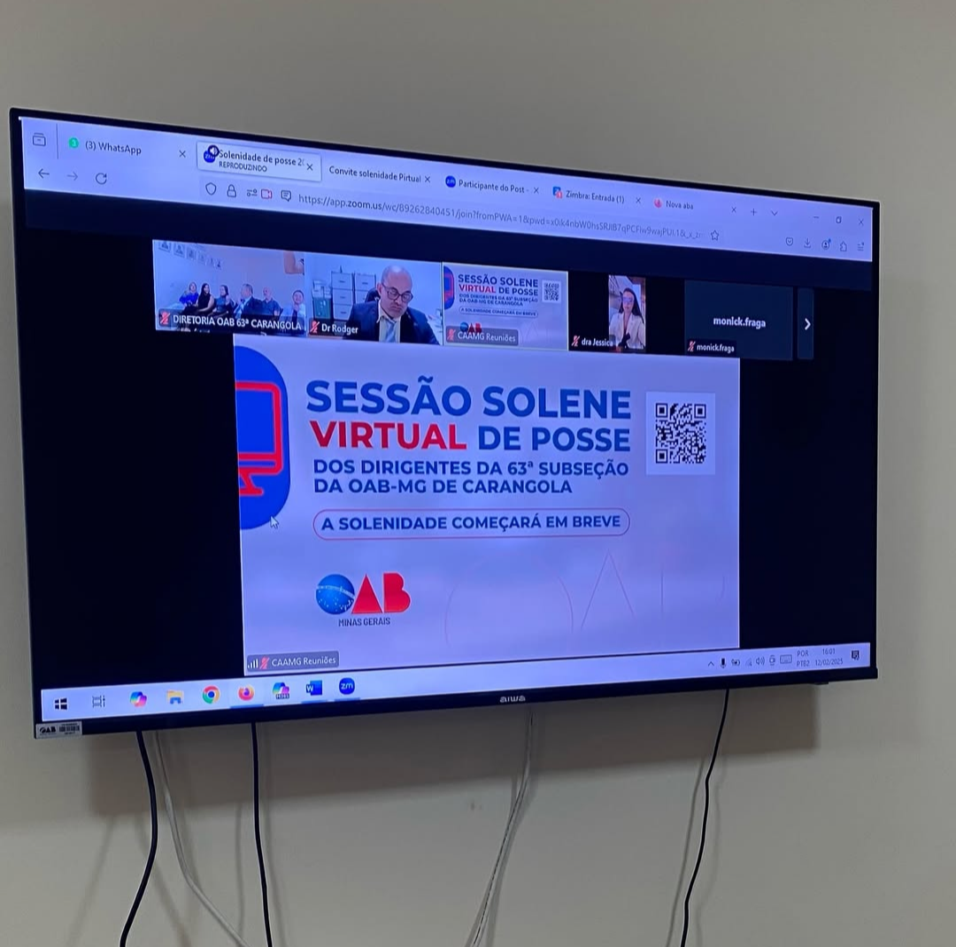 NOVA DIRETORIA DA 63ª SUBSEÇÃO DA OAB/MG TOMA POSSE EM CARANGOLA ATRAVÉS DE CERIMÔNIA VIRTUAL