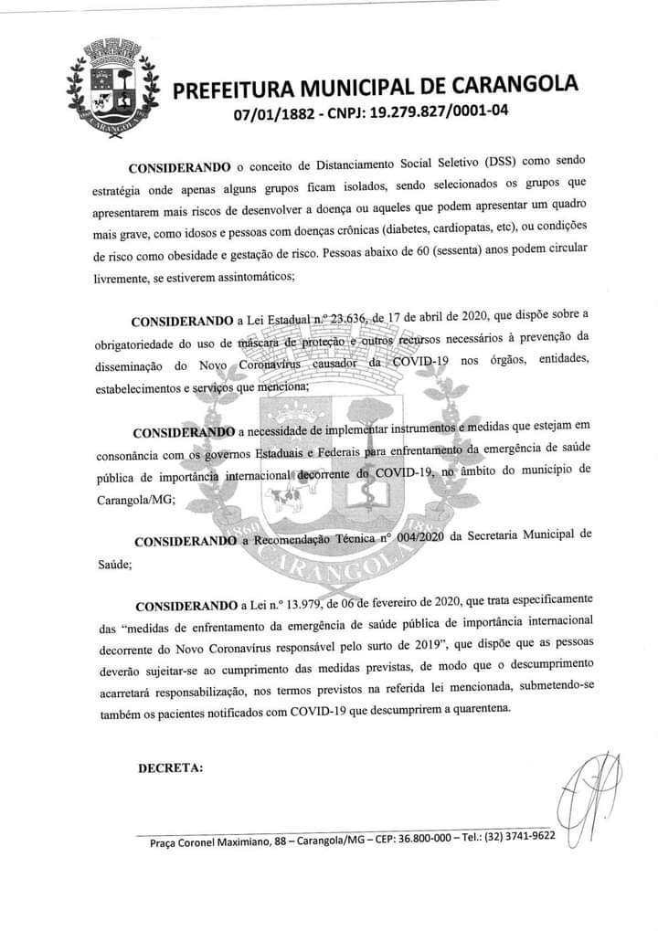 A Câmara Técnica de Enfrentamento ao Coronavírus (COVID-19), ao realizar no e minucioso estudo técnico com vistas ao monitoramento a evolução e controle do vírus. Orientou a elaboração DECRETO MUNICIPAL 532/2020 de 22 de outubro de 2020 que dispõe de novas medidas de flexibilização e retomada das atividades suspensas até que seja necessária uma nova intervenção.