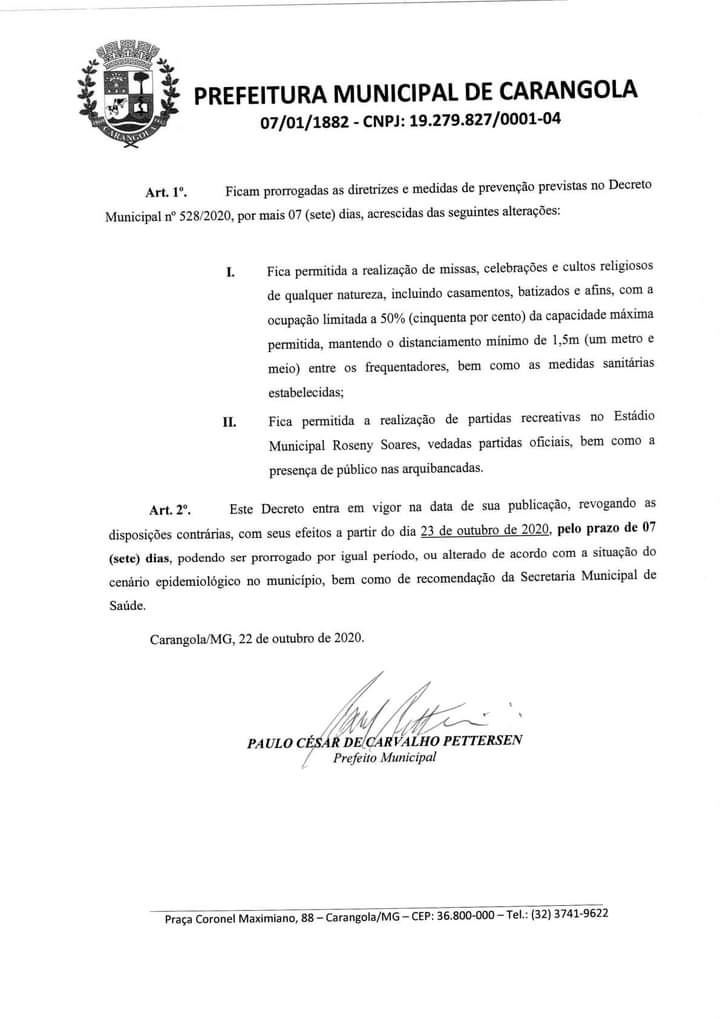 NOVO DECRETO DE FLEXIBILIZAÇÃO DE MEDIDAS PERMITE MISSAS, CULTOS E CELEBRAÇÕES COM ATÉ 50% DA CAPACIDADE MÁXIMA DE PÚBLICO, ALÉM DE PERMITIR PARTIDAS RECREATIVAS NO ESTÁDIO MUNICIPAL ROSENY SOARES
