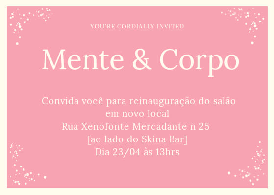 Para melhor atender vocês o salão Mente e Corpo mudou para a Rua Xenofonte Mercadante, n 25 ( ao lado do Skina Bar).