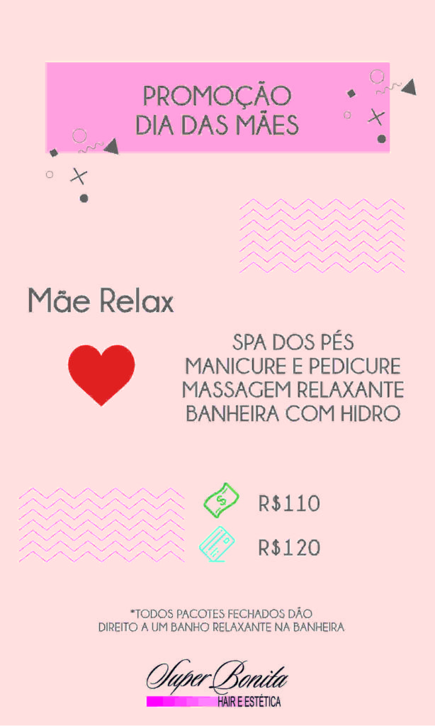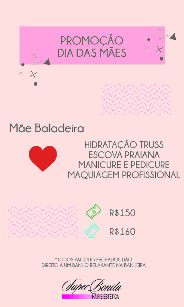 Atenção clientes e amigos, o Salão Super Bonita está fazendo uma super promoção para deixar as mamães ainda mais lindas! Não fique fora dessa…