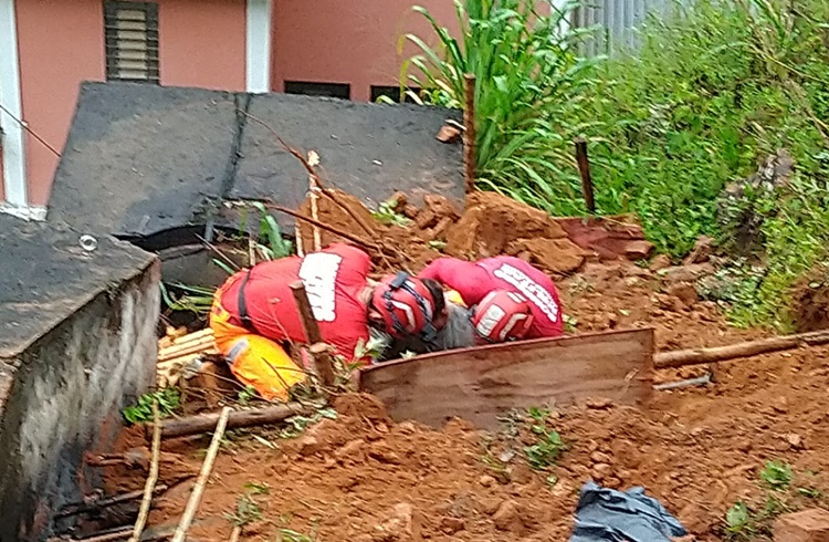 A guarnição após avaliação do local, criação de rota de fuga e estabilização rápida para evitar novos deslizamentos, iniciou os trabalhos usando ferramentas e técnicas para salvamento em soterramento.