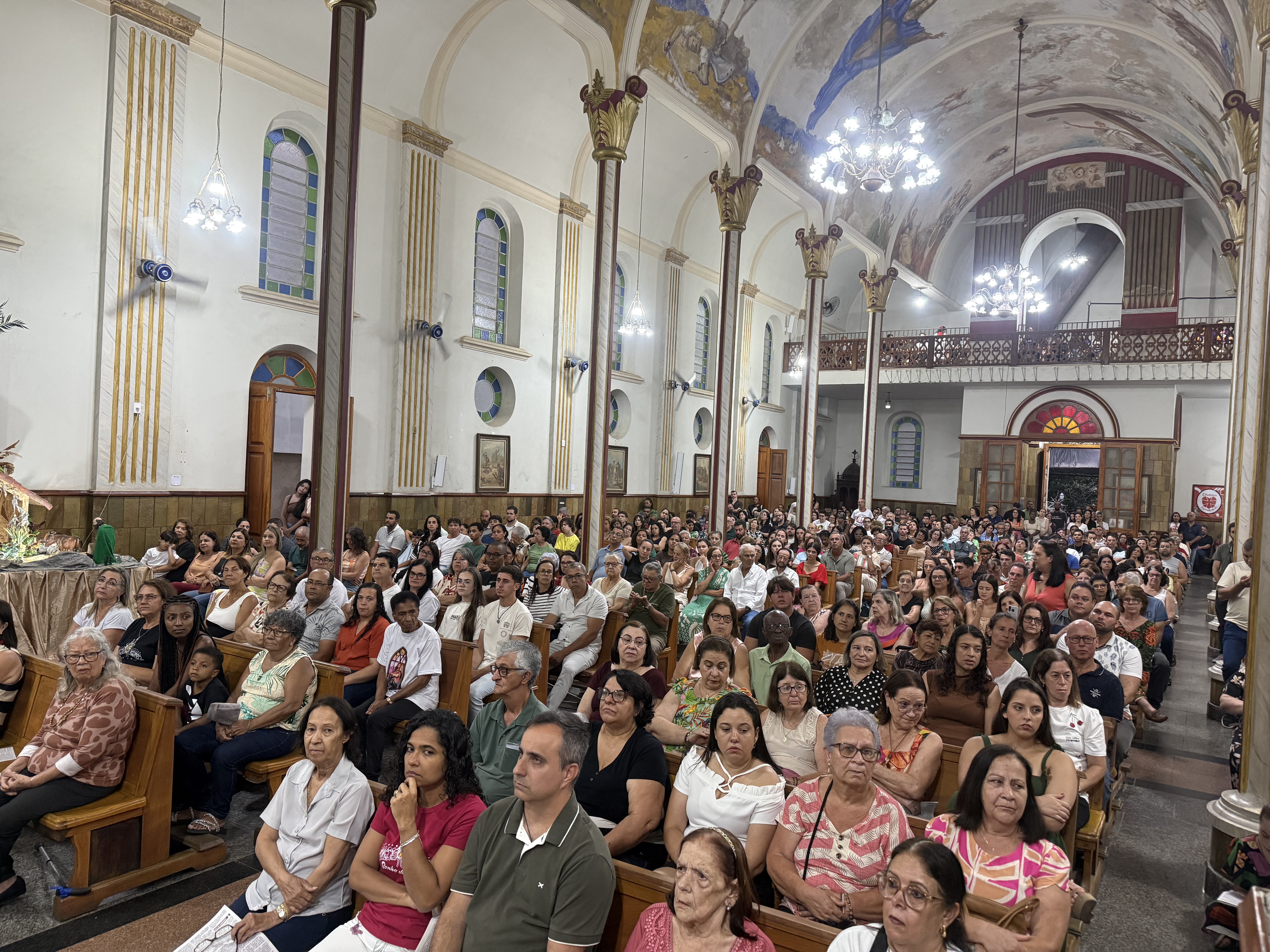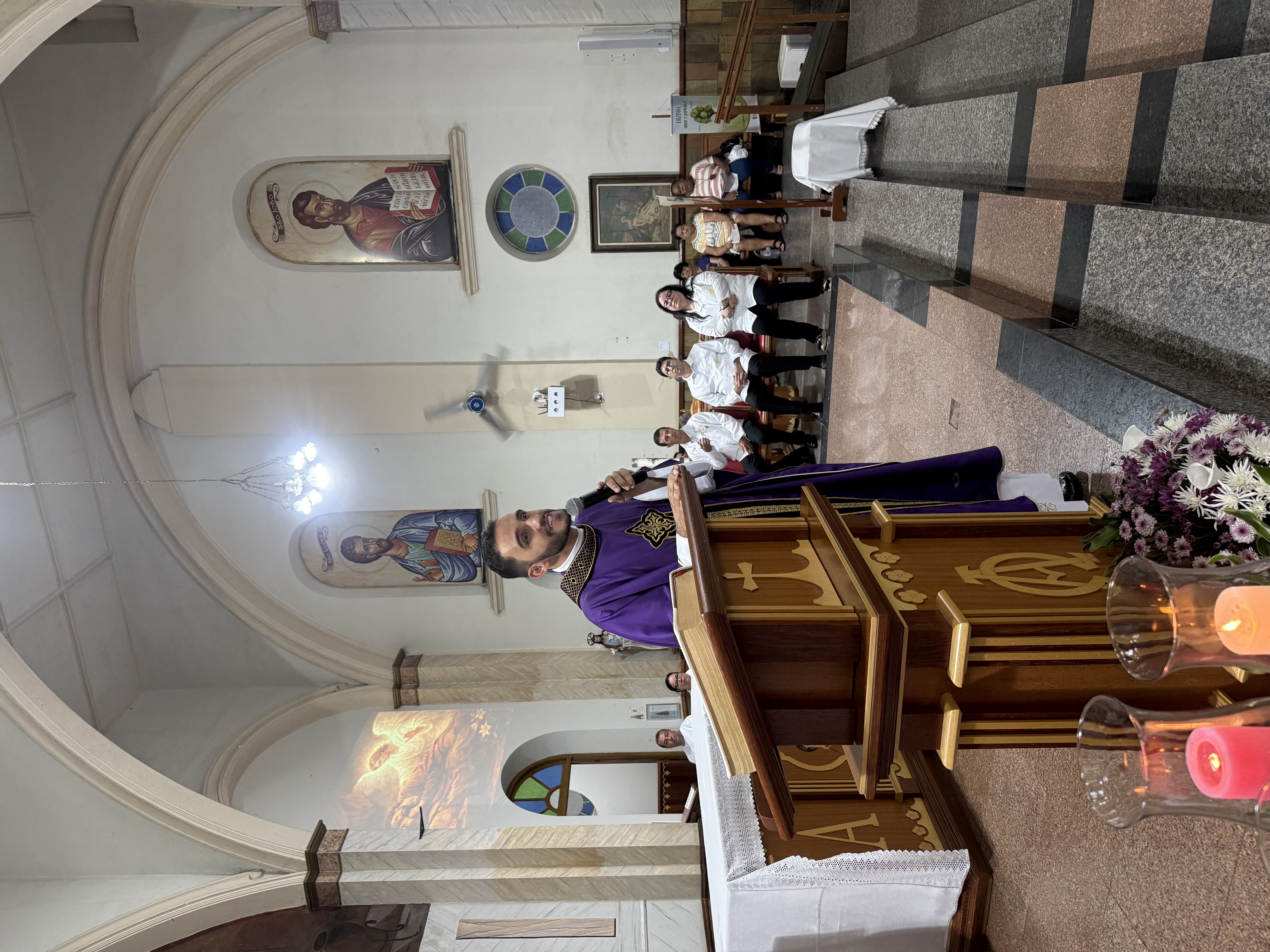 23 de dezembro de 2025A noite deste domingo (21) foi marcada por um clima de alegria e ao mesmo tempo tristeza na Paróquia de Santa Luzia em Carangola. O Padre Higor Luiz, vigário paroquial há 1 ano e 7 meses celebrou uma missa onde fez sua despedida da comunidade católica de Carangola, para assumir a função de pároco em Conceição de Ipanema. Além da Missa, concelebrada pelo Padre Eguinaldo (pároco de Santa Luzia), o Padre Higor participou do SONETO DE NATAL no pátio do Santuário, onde juntamente com Maria Clara (Clarinha) e Banda, puderam louvar a Deus com músicas católicas da autoria do próprio sacerdote, bem como músicas populares católicas que emocionaram e evangelizaram o público presente.
