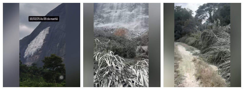 O fenômeno foi registrado em vídeo por Rosiane Faria e Luís Mauro Werner, evidenciando a contínua instabilidade da estrutura rochosa e reforçando a preocupação dos residentes com possíveis impactos na comunidade.
