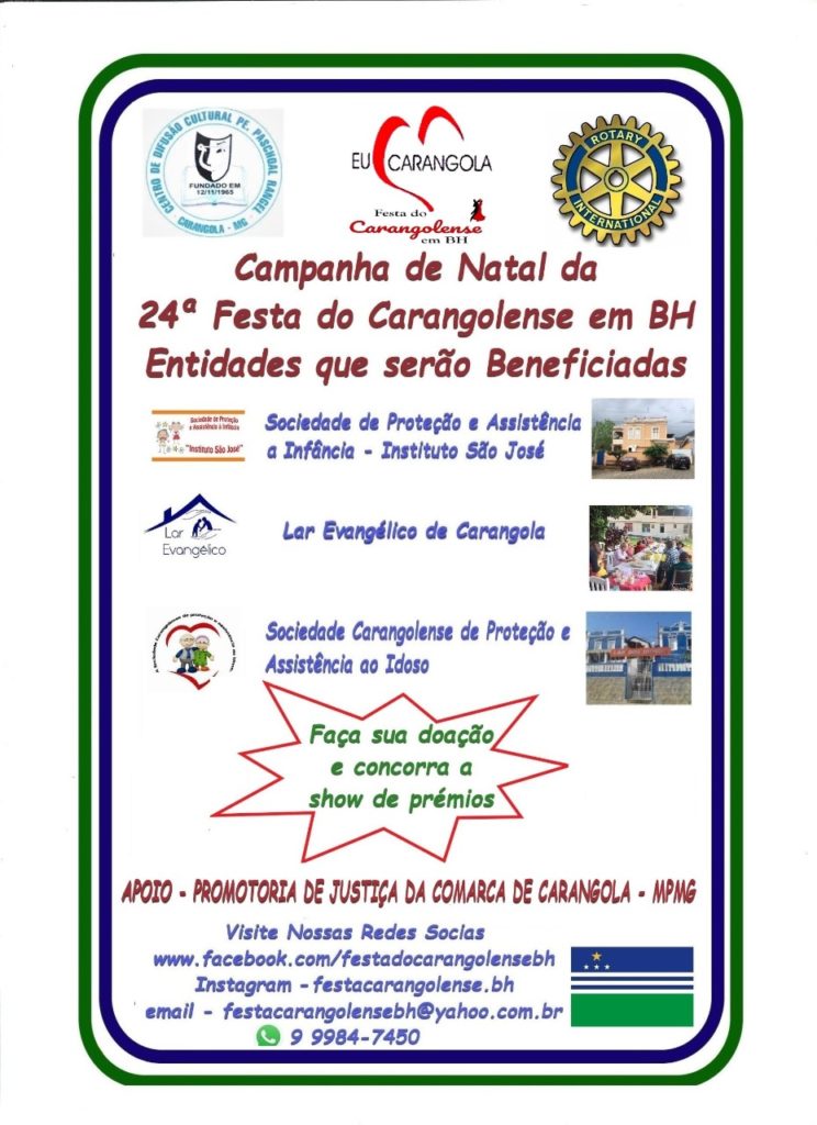 PARTICIPE DA CAMPANHA DE NATAL DA 24° FESTA DO CARANGOLENSE EM BH