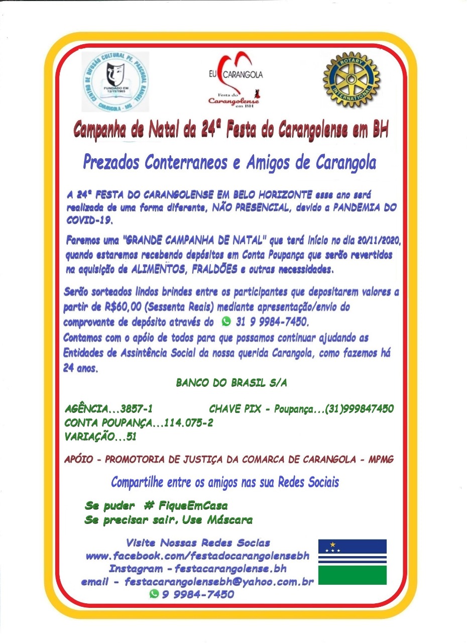 PARTICIPE DA CAMPANHA DE NATAL DA 24° FESTA DO CARANGOLENSE EM BH