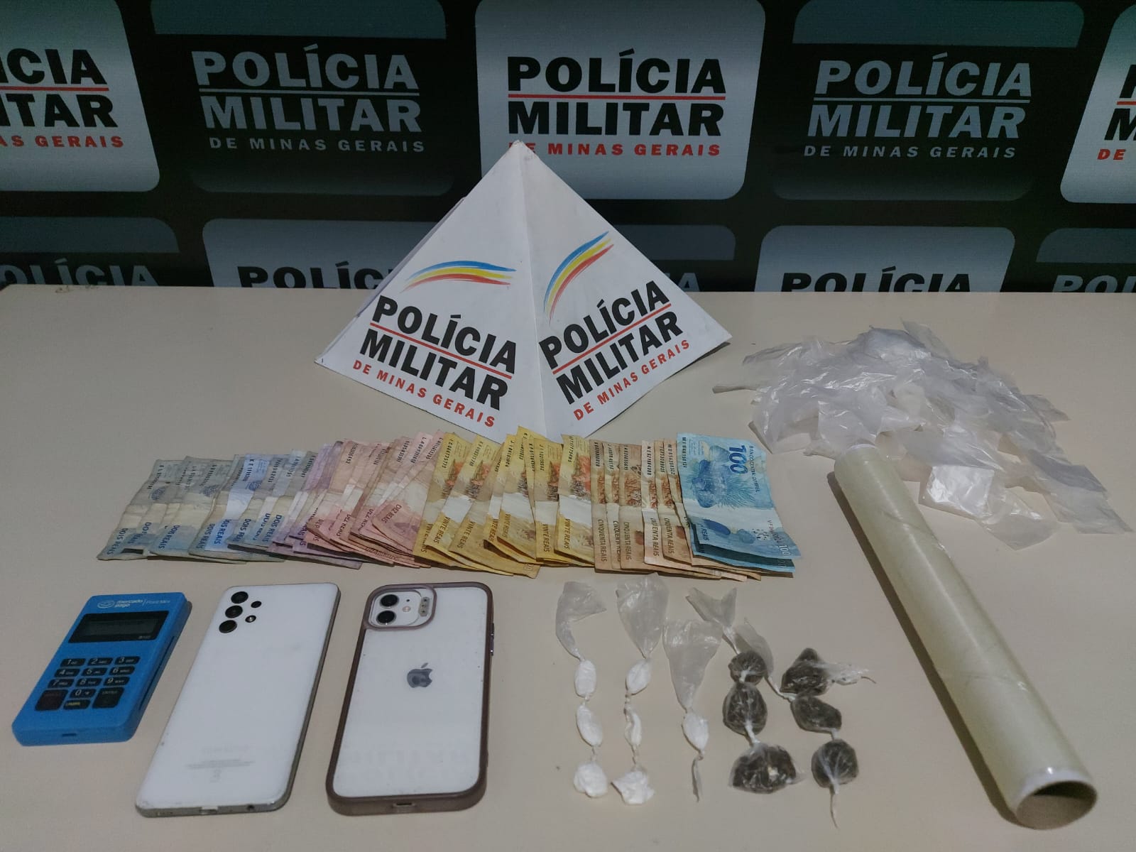 Durante Operação PMMG 250 anos: Carnaval 2025, foi dado cumprimento a mandados de busca e apreensão em desfavor de O.F.M e R.R.L, residentes no bairro Santo Onofre. Durante diligências, as guarnições PM lograram êxito em localizar e apreender os seguintes materiais relacionados ao tráfico de drogas:
