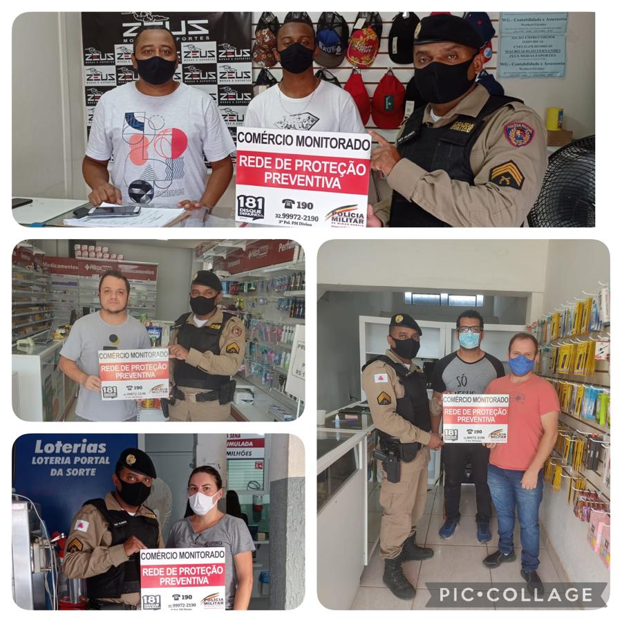 A Polícia Militar de Divino está trabalhando para fomentar a Rede de Comércios Protegidos da cidade, uma estratégia de prevenção da PMMG que vem dando certo, obtendo muitos resultados positivos no estado de Minas.