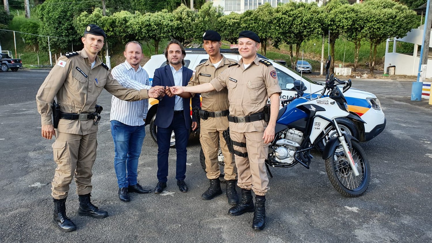 Durante o evento, as chaves foram entregues pelo Deputado Eros Biondini aos Comandantes das Companhia PM de Manhuaçu e Manhumirim, Capitão Túlio e Capitão Arruda, acompanhados do efetivo de suas Frações PM.