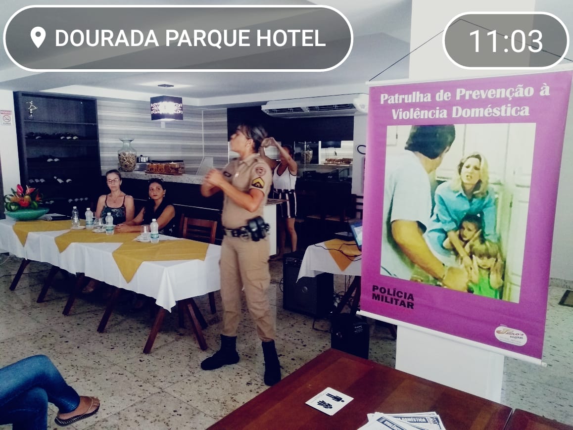Na manhã desta quinta-feira (14), a Polícia Militar de Pedra Dourada realizou uma esclarecedora palestra com o tema “VIOLÊNCIA DOMÉSTICA” para dezenas de mulheres do município, no auditório do Dourada Parque Hotel. Na oportunidade, a Sgt Lana e o Cb Mello, com a participação do Sgt Marcelo Vaz, orientaram às participantes sobre a legislação em vigor, sobre as providências policiais e medidas de proteção que as mesmas devem adotar para permanecerem seguras.