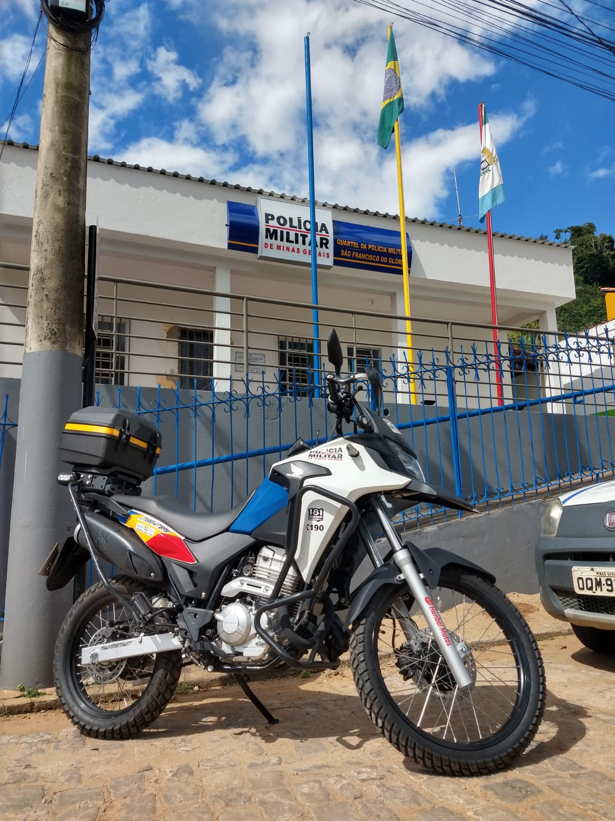 Já se encontra à disposição da Polícia Militar em São Francisco do Glória uma motocicleta para apoiar o policiamento ostensivo da cidade, facilitando a agilidade e mobilidade no atendimento às demandas da comunidade. A aquisição da referida motocicleta foi por meio de empenho e esforço da Administração Municipal atual de São Francisco do Glória, que intercedeu junto ao Deputado Federal Eros Biondini, que encaminhou recursos de emenda parlamentar para a compra do veículo para a motopatrulha.