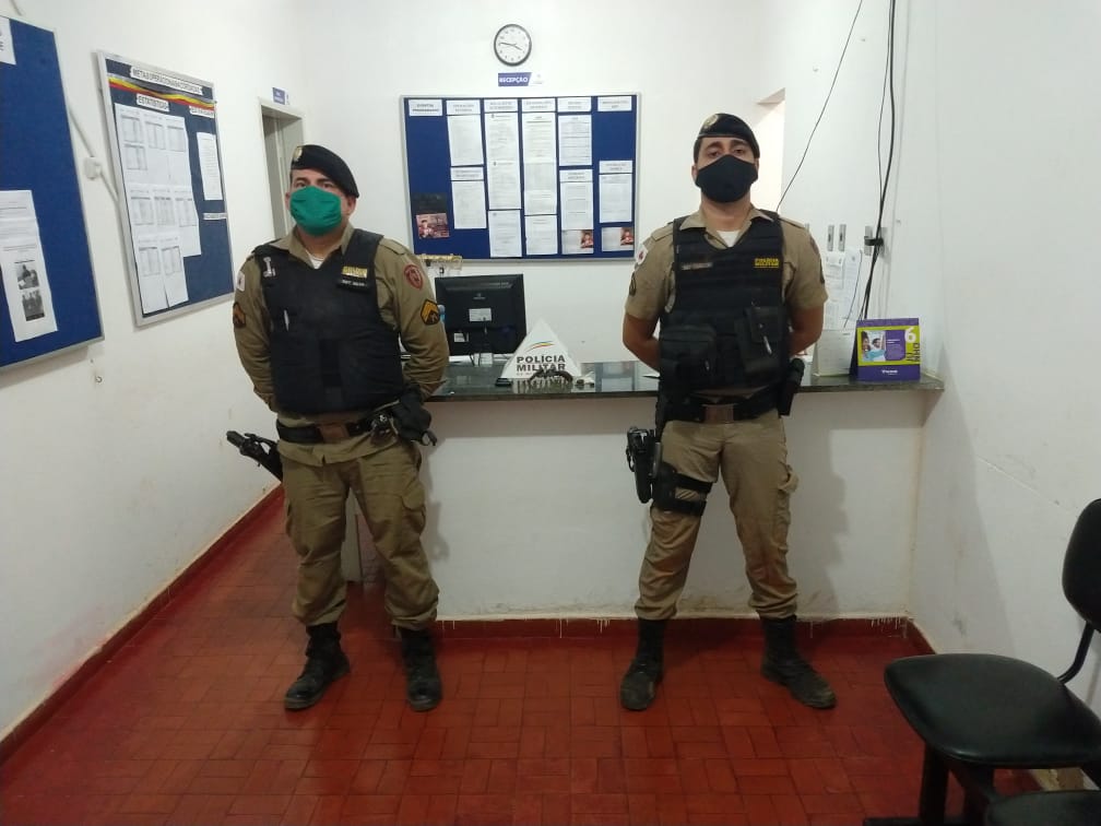 NOTA DO SITE: Parabenizamos os policiais militares de São Francisco do Glória envolvidos nesta ocorrência! O tirocínio policial, a rapidez e a técnica demonstrada alcançou o êxito nesta ocorrência, que certamente evitou a ocorrência de outro crime, já que o infrator possuía uma arma de fogo municiada, além de várias munições e drogas no bolso.
