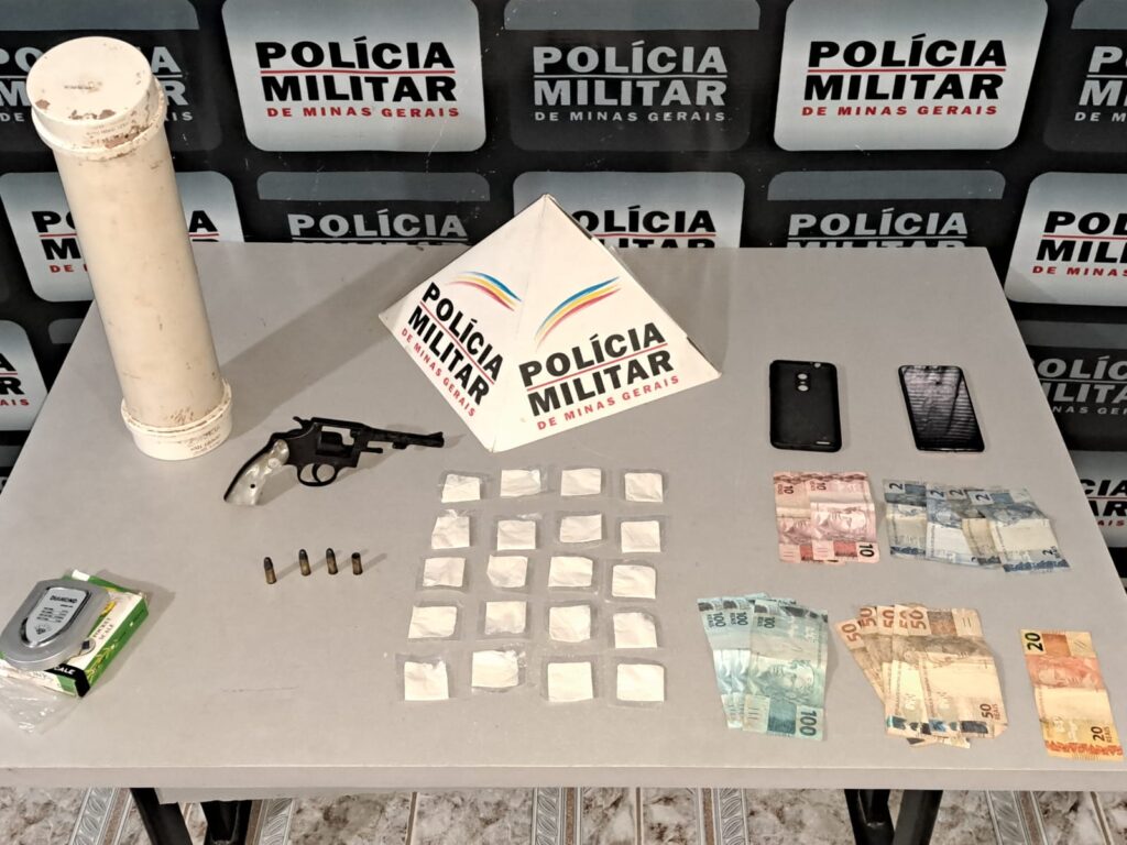 Após às buscas, foram localizadas drogas, balança de precisão, dinheiro e uma arma de fogo.