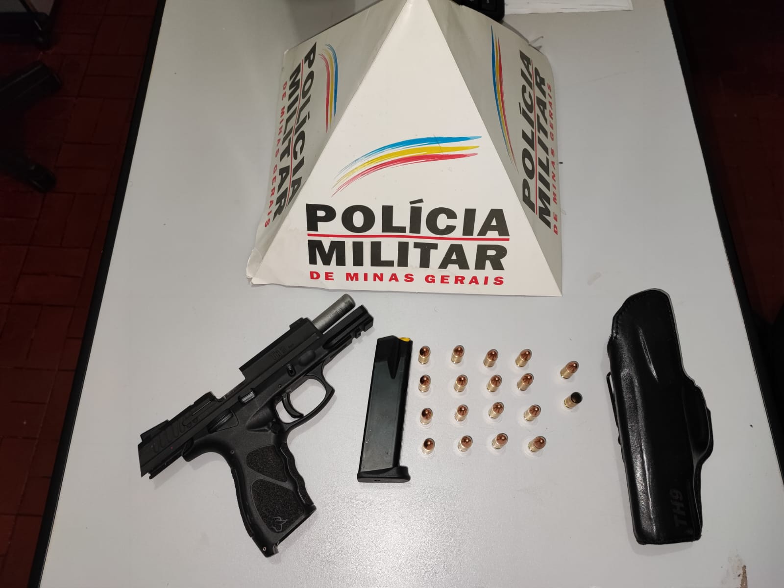 Nesta sexta-feira (29), durante a Exposição Agropecuária de São Francisco do Glória, a Polícia Militar recebeu informações de que um condutor portava ilegalmente uma arma de fogo em um veículo. De imediato, a Polícia Militar iniciou diligências, logrando êxito em localizar e abordar o veículo denunciado, sendo localizada em seu interior uma pistola calibre 9mm e munições.