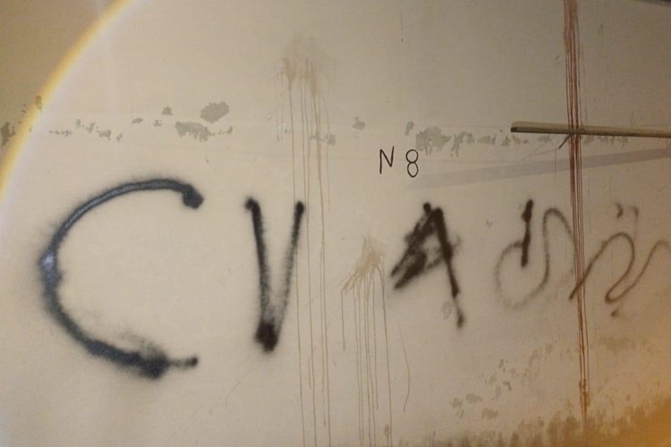 Por ocasião das buscas nas residências dos suspeitos foram encontrados a camisa utilizada no dia do crime, bem como o spray utilizado para pichar o muro da residência das vítimas.