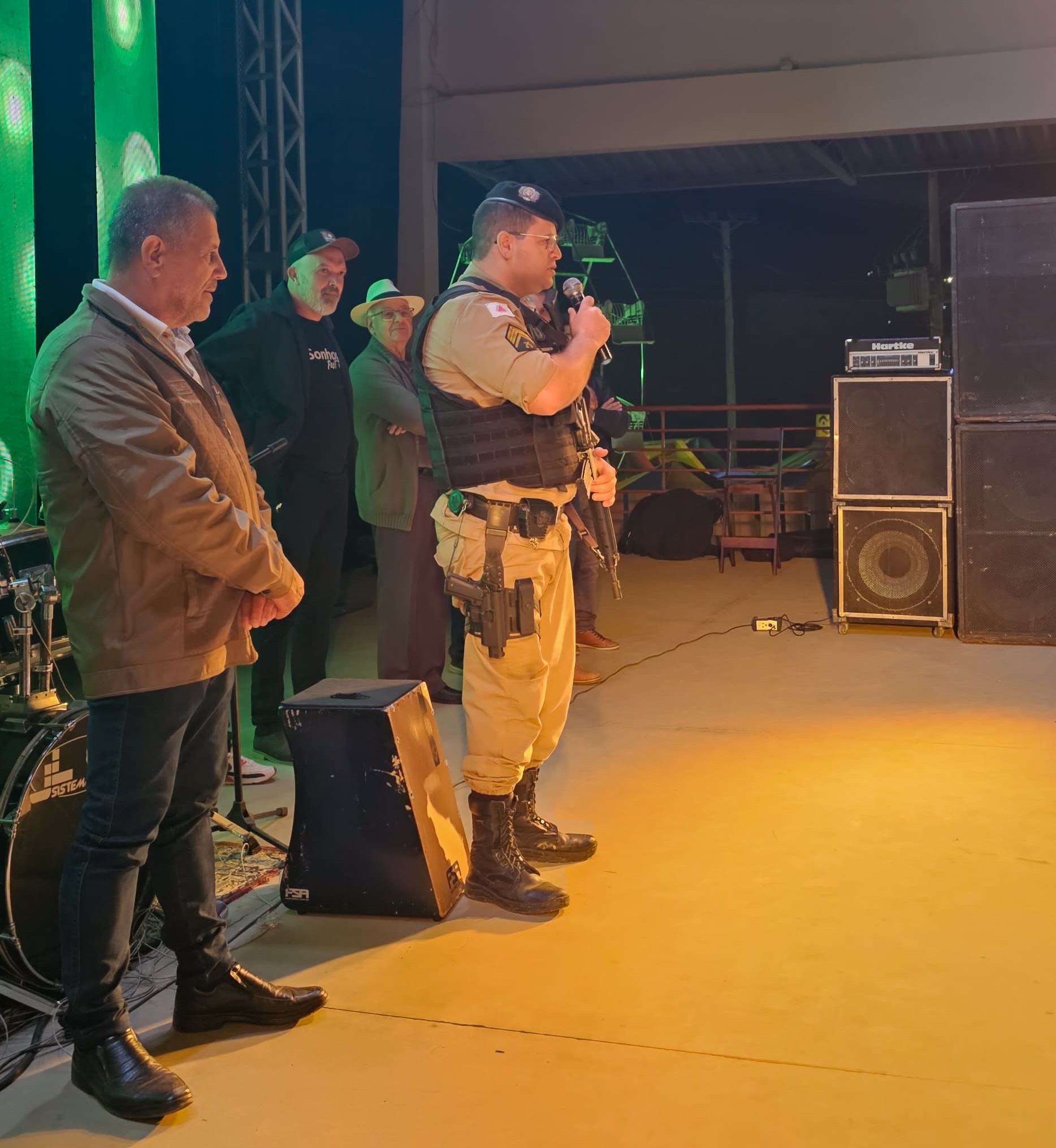 Aproveitando a oportunidade, a Patrulha Rural realizou um encontro com autoridades, empresários, agricultores e produtores rurais, contando também com a presença do prefeito de Divino, Sr. Mauri Ventura, e o prefeito de São Francisco do Glória, Sr. Inácio, além de autoridades locais e representantes das pastas de agricultura e meio ambiente.