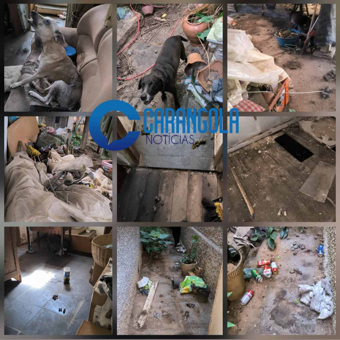 Um dos animais apresentava estado crítico de saúde, com magreza extrema, múltiplas lesões pelo corpo e cegueira bilateral. Os outros dois cães, apesar de não apresentarem ferimentos visíveis, estavam sem acesso a água e alimento. O ambiente era insalubre, com acúmulo de fezes, urina e lixo.
