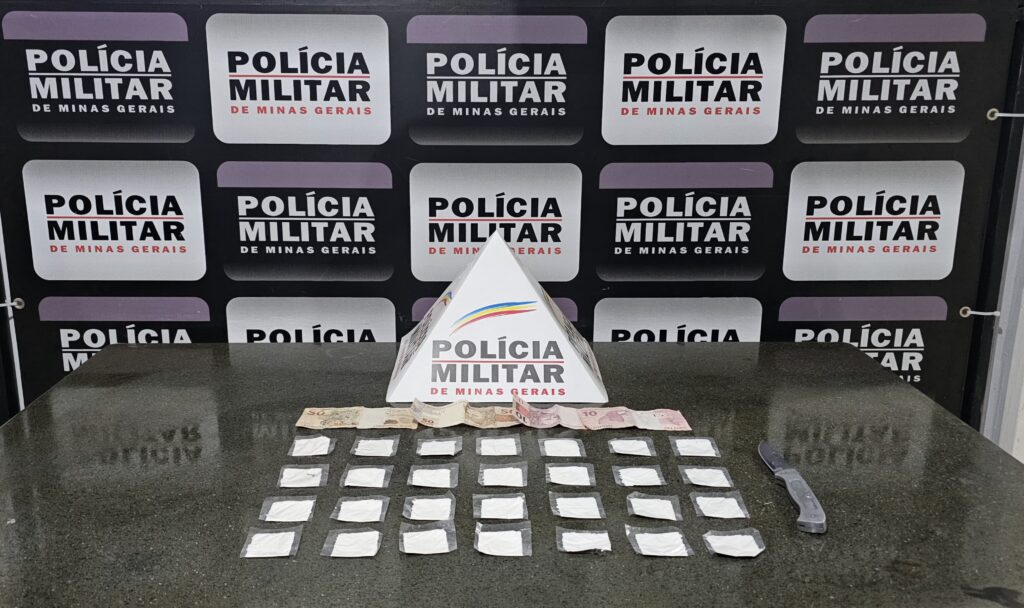 Na ocasião, após revista pessoal no condutor, foram encontrados em seu bolso 28 papelotes de cocaína, embalados à vácuo, além de certa quantia em dinheiro, sendo R$120,00 reais em notas diversas, bem como uma arma branca (um canivete).