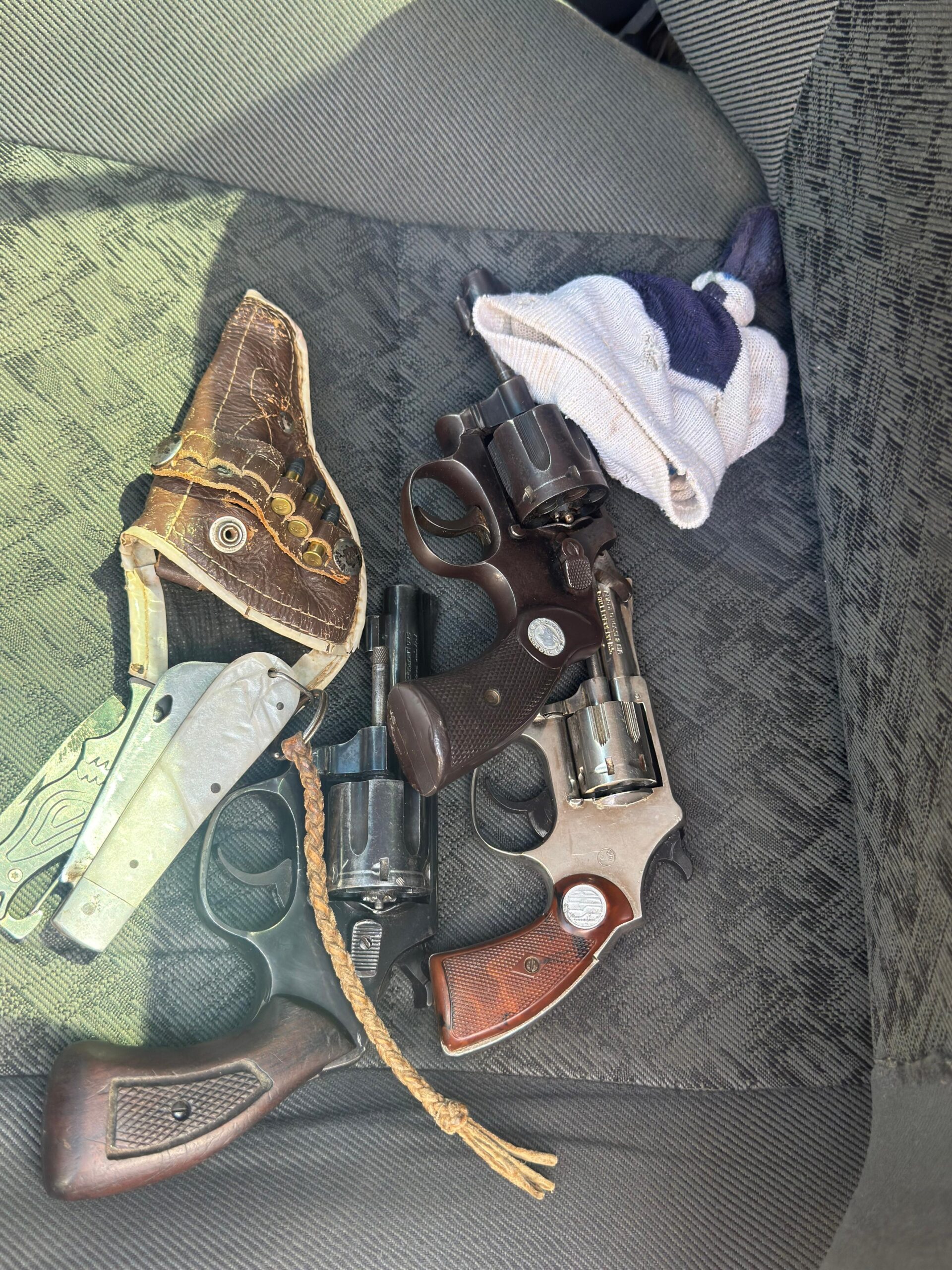 Durante a operação, três indivíduos foram abordados. Com um dos suspeitos, foram localizadas duas armas de fogo do tipo revólver calibre .32. Em diligências complementares, os militares encontraram ainda um terceiro revólver calibre .22, devidamente municiado, no interior de um dos veículos utilizados.