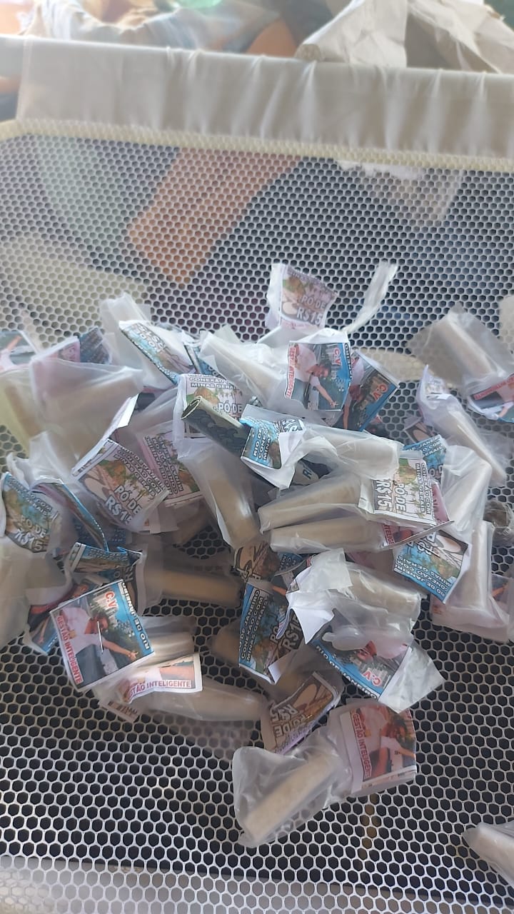 • Diversas sacolas plásticas utilizadas para embalar drogas.