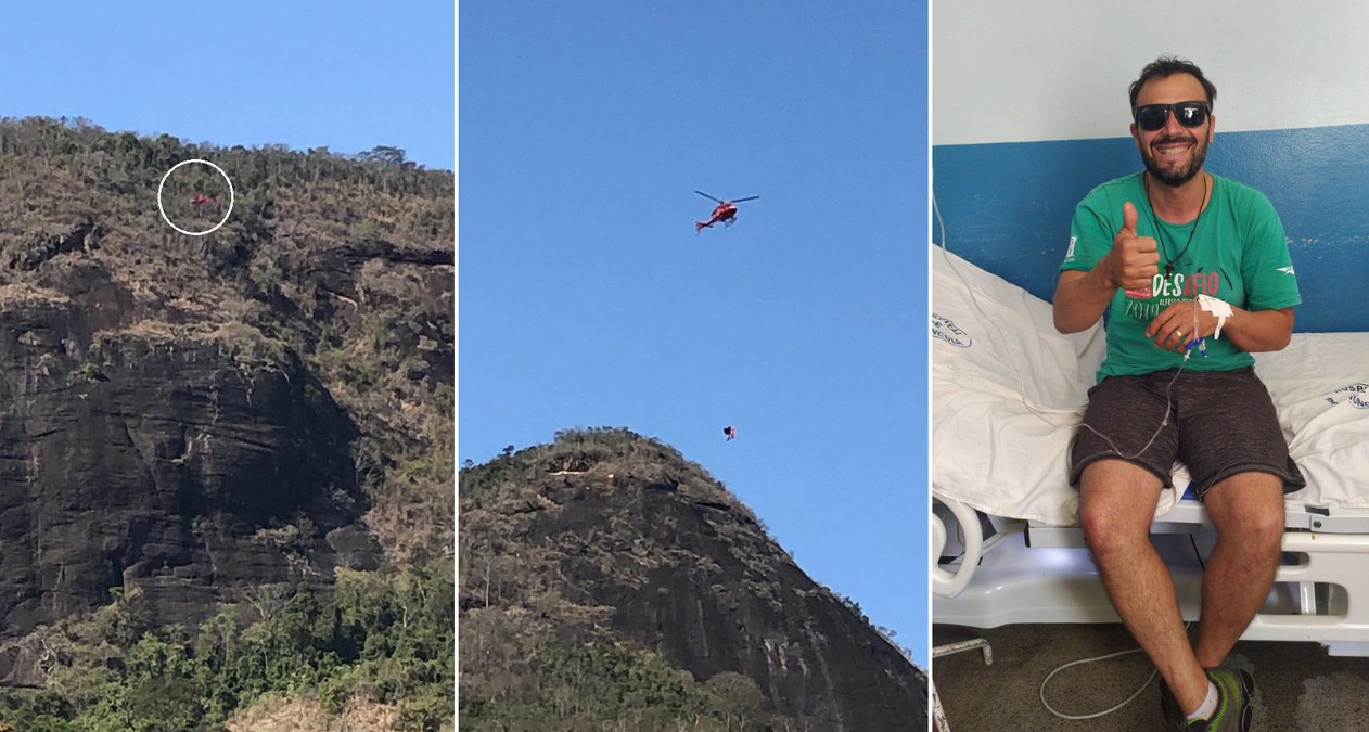 Joelson foi resgatado na manhã deste domingo (1º), com a ajuda de uma aeronave do Corpo de Bombeiros. Morador do Espírito Santo, ele contou ao G1 que se distraiu durante o salto e acabou atingindo a árvore.