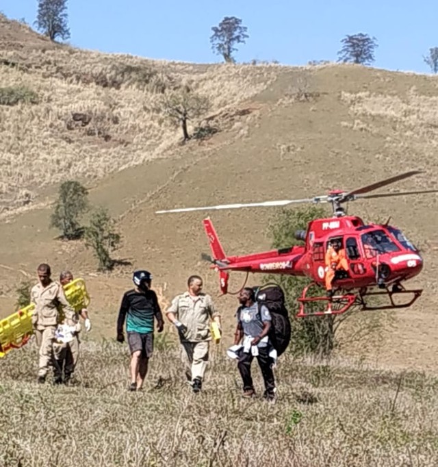 Ele foi resgatado na manhã deste domingo (1º), em Porciúncula, RJ, com auxílio de uma aeronave do Corpo de Bombeiros.