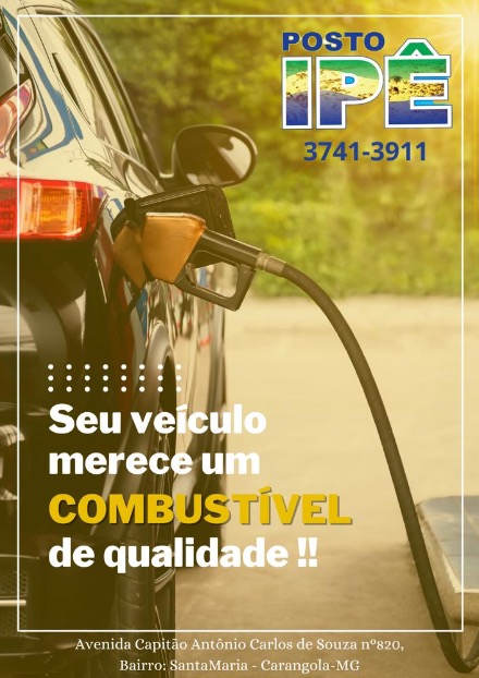 POSTO IPÊ: AVENIDA CAPITÃO ANTÔNIO CARLOS DE SOUZA, 820, SANTA MARIA – CARANGOLA -MG – TELEFONE: 3741-3911