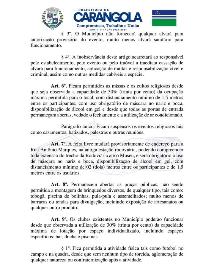 PREFEITO DE CARANGOLA EMITE DECRETO MUNICIPAL QUE ADOTA MEDIDAS DE ENFRENTAMENTO AO CORONAVÍRUS; FEIRA LIVRE MUDA DE LOCAL E SERÁ NA RUA DO BARRACÃO