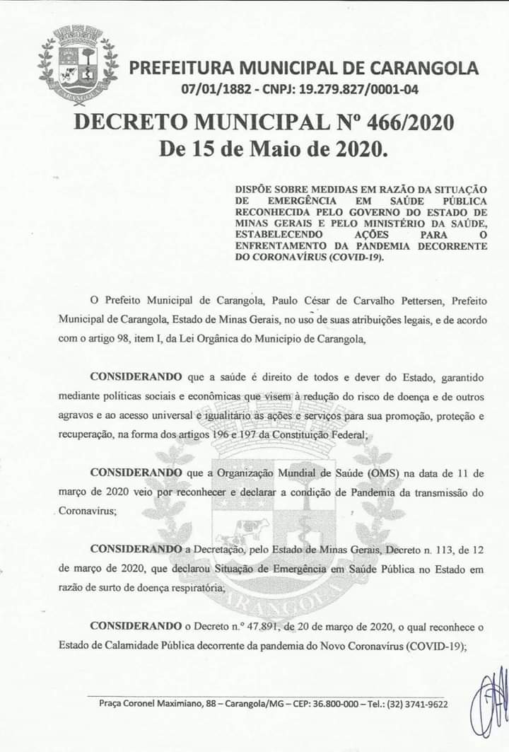 O Decreto na íntegra se encontra disponível no site http://www.carangola.mg.gov.br ou na página oficial da Prefeitura Municipal de Carangola no Facebook.