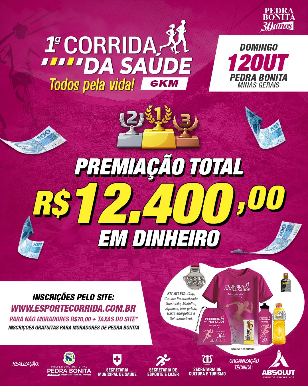 PREFEITURA DE PEDRA BONITA PROMOVE 1ª CORRIDA DA SAÚDE COM PREMIAÇÃO DE R$ 12.400,00