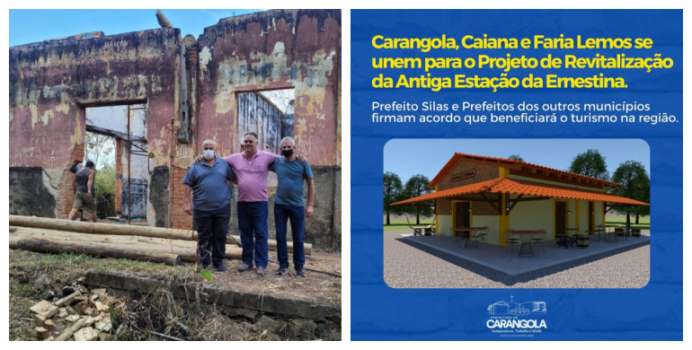 PREFEITURAS DE CARANGOLA, CAIANA E FARIA LEMOS SE UNEM PARA RESTAURAR ANTIGA ESTAÇÃO DA ERNESTINA