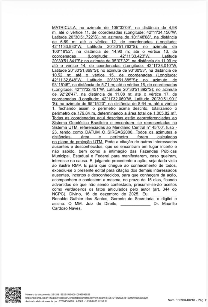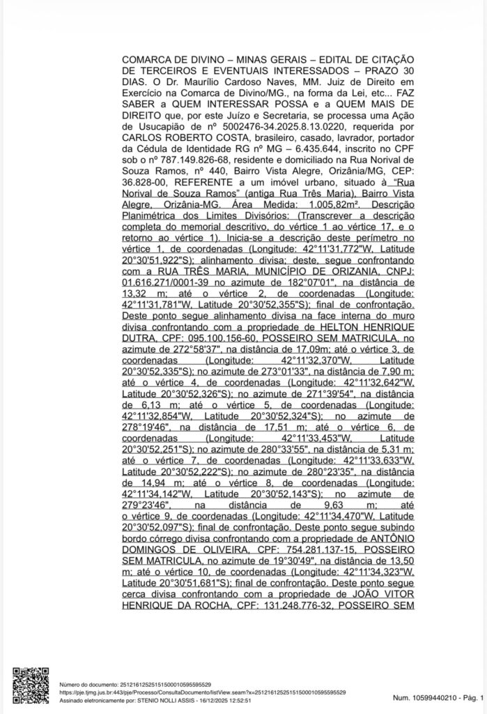 PJe – Processo Judicial Eletrônico Número: 5002476-34.2025.8.13.0220