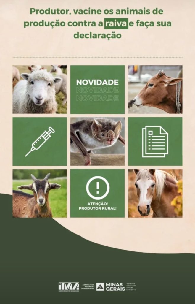Começou no dia 1° de maio a primeira etapa anual de vacinação contra a febre aftosa em Minas. Devem ser imunizados bovinos e bubalinos de zero a 24 meses. Além da vacinação e declaração contra febre aftosa, devem também vacinar e declarar vacina contra a raiva dos herbívoros (bovinos, bubalinos, equídeos, caprinos e ovinos). A vacinação contra raiva tem grande importância, já que trata-se de zoonose (transmitida de animais para pessoas).