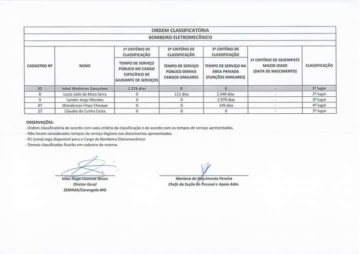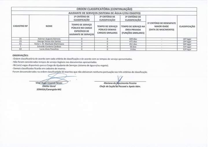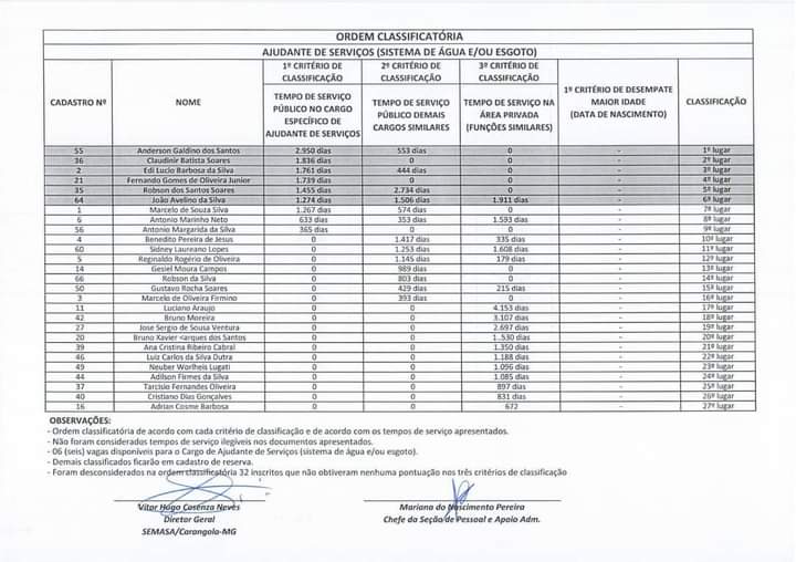SEMASA INFORMA RESULTADO DO PROCESSO SELETIVO DE DESIGNAÇÃO PÚBLICA 6 de fevereiro de 2021 Fonte: SEMASA