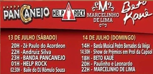A festa continua neste sábado (13) e domingo (14) com a seguinte programação: