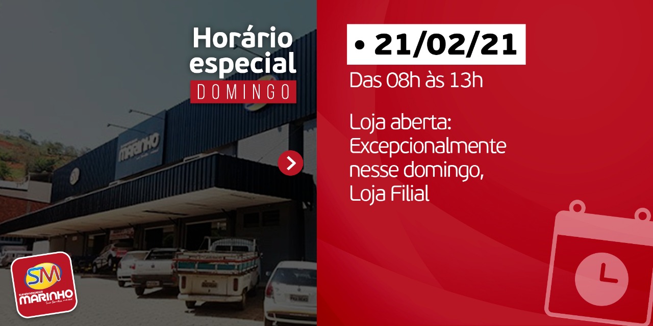 SUPERMERCADO MARINHO FILIAL ESTARÁ ABERTO NESTE DOMINGO (21) ATÉ 13H PARA ATENDER CLIENTES EM DE FORMA EXCEPCIONAL