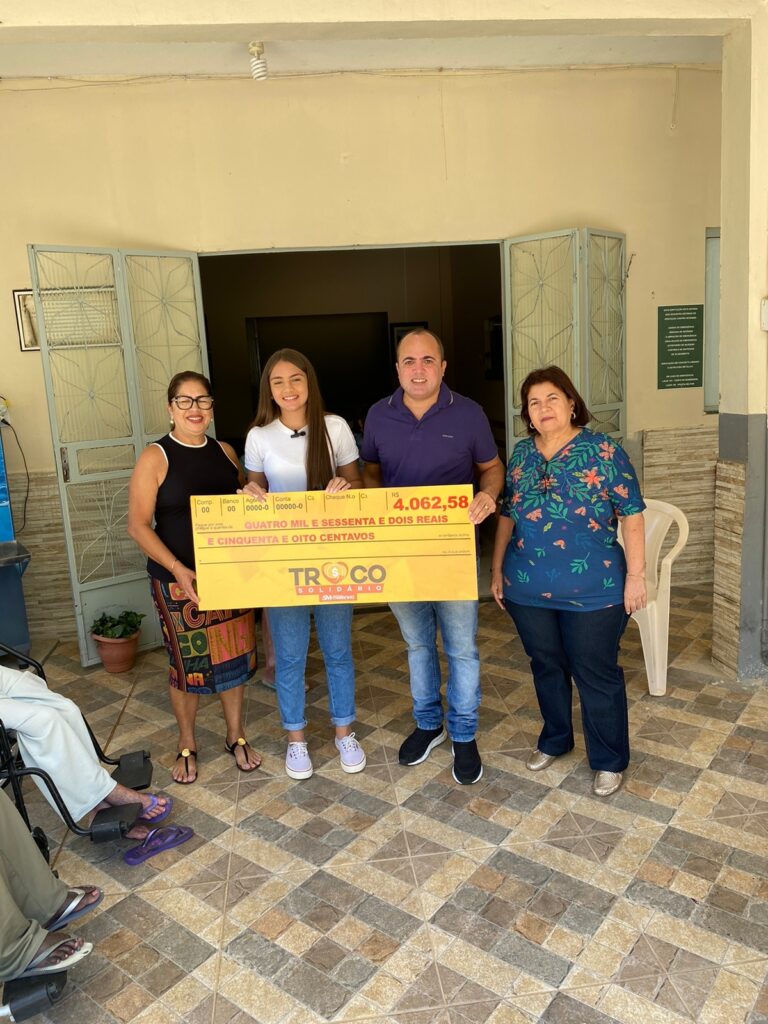 No dia 17/01/2023, foi entregue pelas mãos dos Diretores da empresa Supermercados Marinho, Luzia, Ramires e filha Maria Victória a uma das diretoras do lar Evangélico de Carangola Sra. Dulcilene, o valor de R$4.062,58, referente a Campanha Troco Solidário Supermercados Marinho.