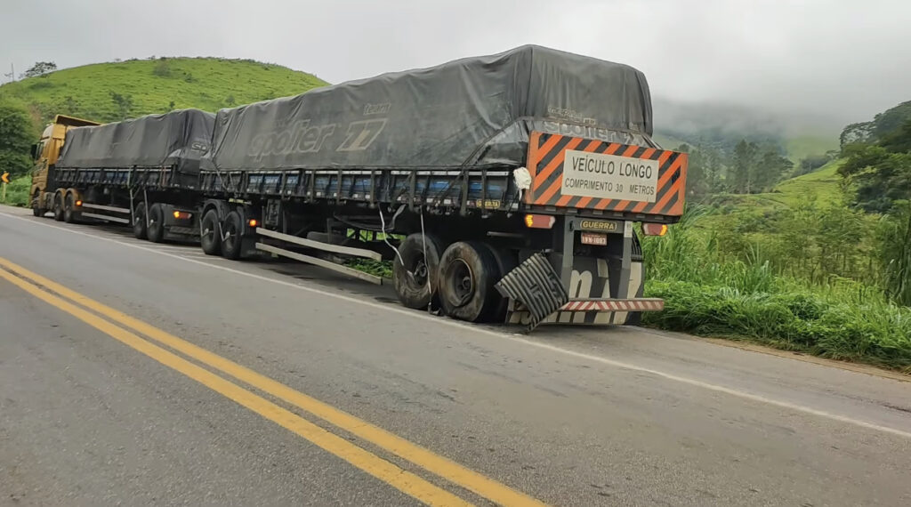 Foi informado para as autoridades que a carreta saia do Posto F2, atravessava a pista, momento em que foi atingida lateralmente pelo veículo Fiat Pálio e logo atrás estava vindo o Fiat Strada que também bateu nos veículos e foi parar sobre o canteiro.