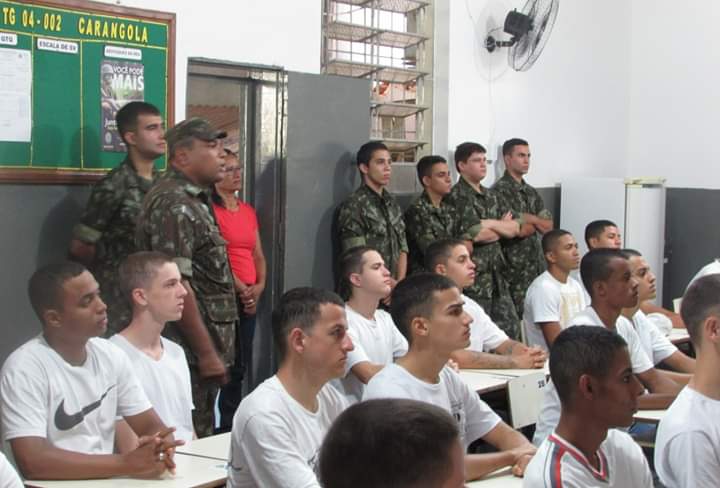 O 1° Sgt Firmino ministrou a aula utilizando um datashow para registrar e enaltecer a história do TG 04-002 de Carangola, fundado em 01.02.1918, lembrando que foi um dos primeiros do país e tem hoje 101 anos de história e bons serviços prestados à comunidade carangolense, comentou sobre as atuais instalações da sede, os funcionários, as necessidades, as parcerias realizadas, as expectativas de cursos a serem realizados, ações sociais e atividades a serem realizadas durante o ano e etc.