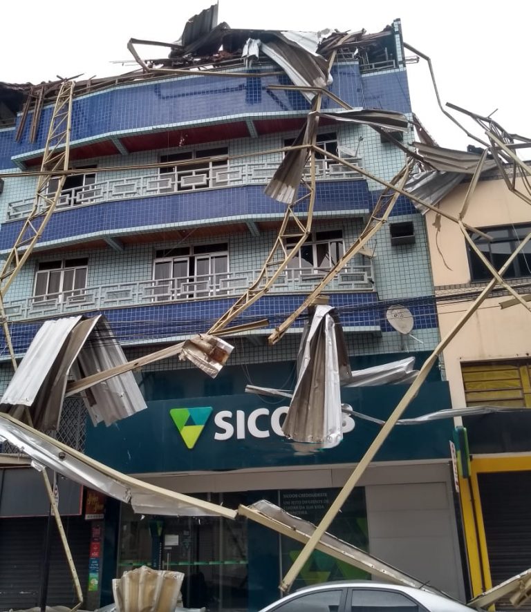 De acordo com informações de moradores daquela cidade, distante 100 quilômetros de Muriaé, uma forte ventania teria sido responsável pelo destelhamento de diversos imóveis, principalmente nas avenidas Padre Arnaldo Jansem, dos Andradas e Senador Levindo Coelho. Também foram registrados danos em estabelecimentos situados em outras ruas, de acordo com estes mesmos moradores. A lona de um circo também teria desabado, sem vítimas.
