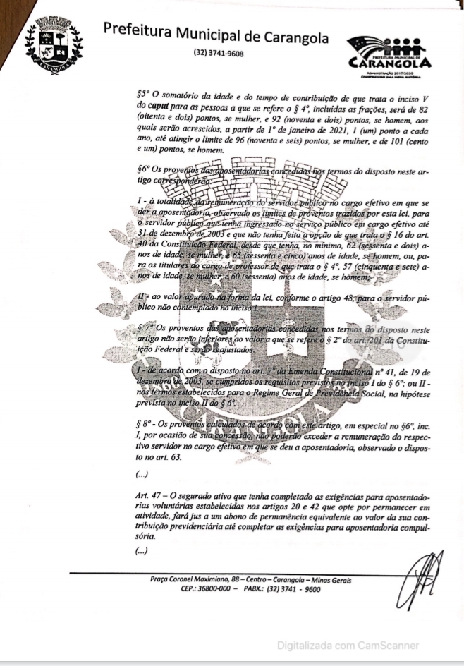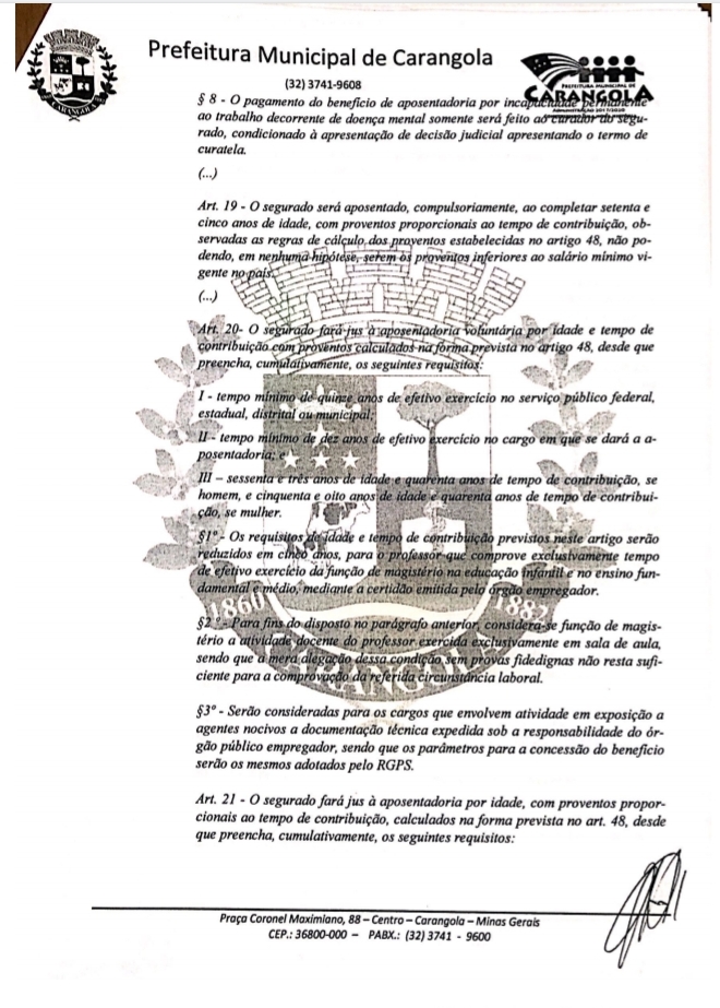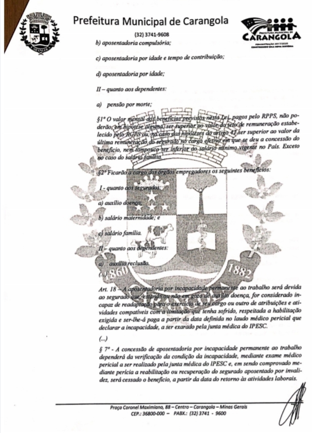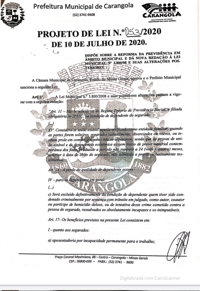 CONFIRA ABAIXO OS PROJETOS DE REFORMA DA PREVIDÊNCIA MUNICIPAL DE CARANGOLA NA ÍNTEGRA:
