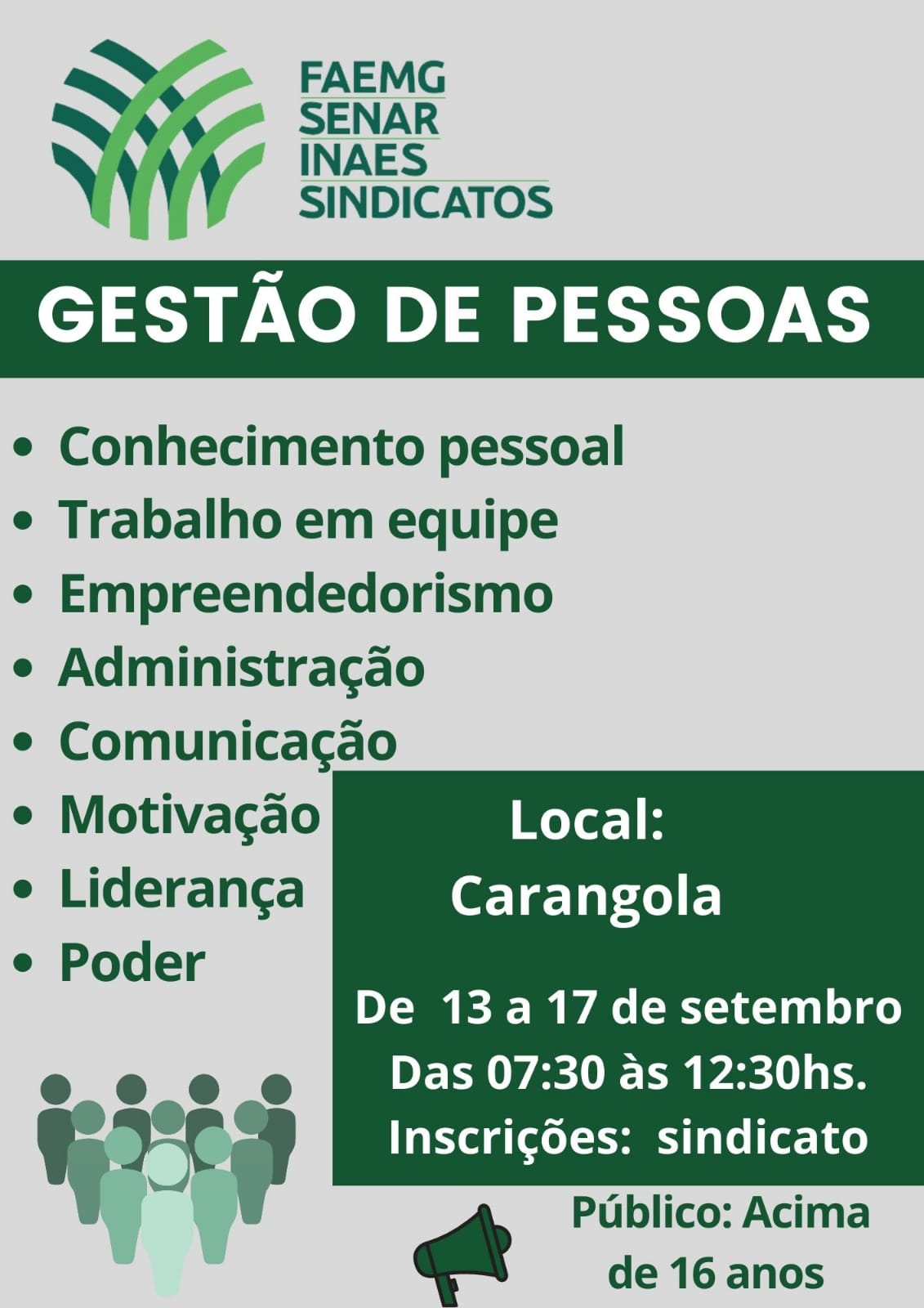 UTILIDADE PÚBLICA: CURSO GRATUITO DE ADMINISTRAÇÃO GESTÃO DE PESSOAS SENAR MINAS