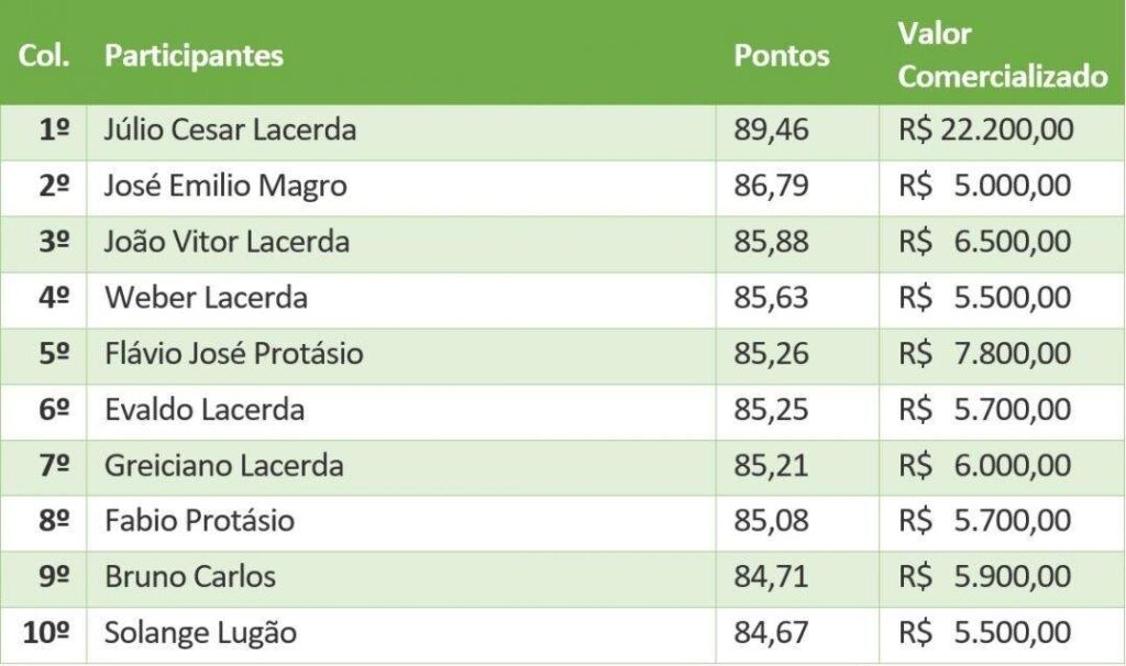 Mais uma vez o concurso de qualidade de café organizado pela Associação de Produtores Rurais de Pedra Menina (Aprupem), foi um sucesso. O primeiro colocado do certame, Júlio Cesar Lacerda, proprietário no Córrego Forquilha do Rio, Município de Dores do Rio Preto, atingiu a marca de 89,46 pontos, recorde dos concursos do Conexão. Além dos prêmios conquistados com a primeira colocação, ele ainda obteve valor de R$ 22.200,00 na comercialização da saca do produto no leilão realizado logo após o anúncio dos vencedores.