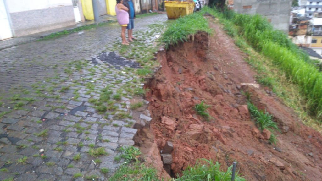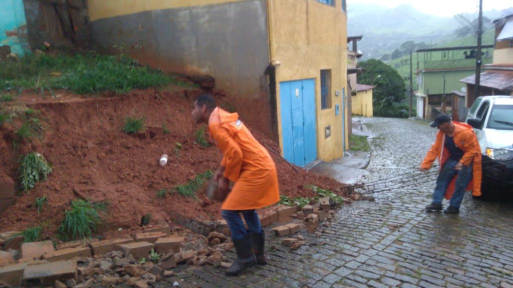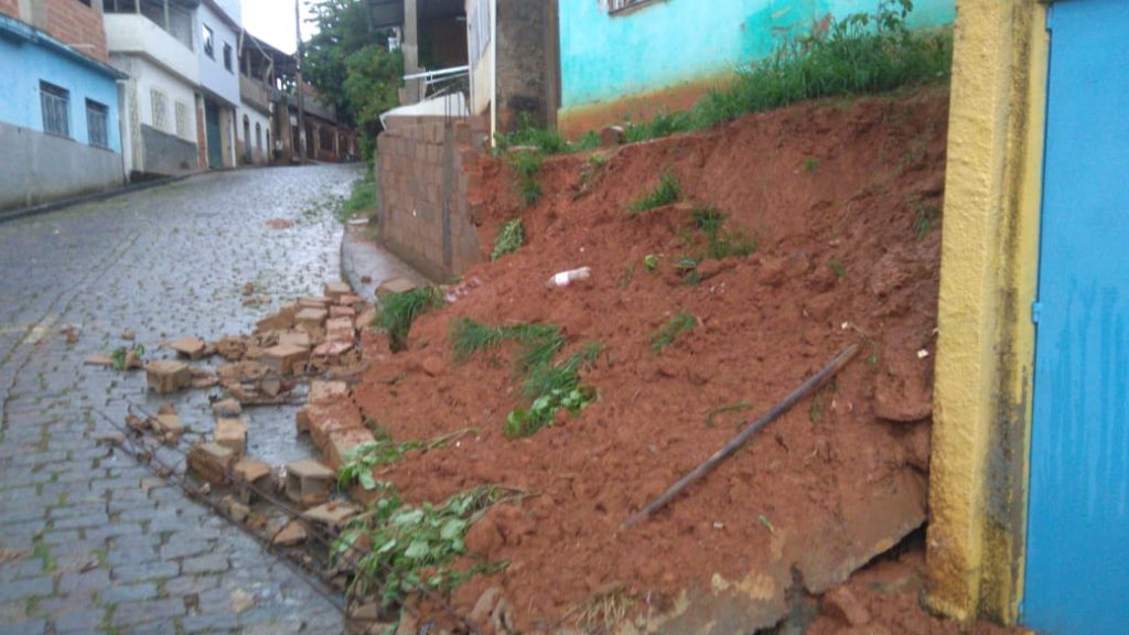VOLUME DE CHUVA EM CARANGOLA ACUMULA 52,8 MM EM APENAS UMA HORA E CAUSA DESLIZAMENTOS E QUEDA PARCIAL DA RUA FERVEDOURO; DEFESA CIVIL TRABALHA COM SUA EQUIPE DANDO ASSISTÊNCIA AOS AFETADOS